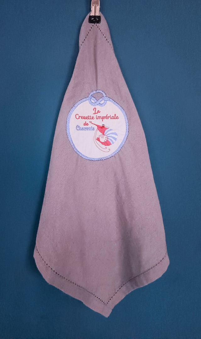 Essuie-main brodé – La Crevette Impériale de Charente 🦐